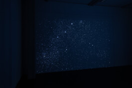 The installation is presented as a film projection on a perforated screen which is based on the star constellation Small Magellanic Cloud.