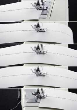The video Undo examines the relationship between medium and gender, art historical canon and textile art, as well as the marginalization of female artists and their works. Undo shows the process of forgetting in reverse: As the sewing machine is running backwards and the dense seam is being dissolved, names of different textile artists become readable.