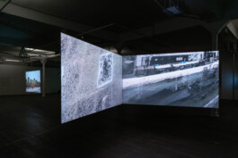 The audiovisual works presented in the exhibition Solid Roof, Severe Weather trace the social and economic fault lines in our contemporary society to speculate about the future of cities and the lives of the people who inhabit them. The artists employ diverse essayistic and speculative methods to devise tangible narratives for urban planning strategies, capital flows, and algorithms as agents with an impact on our everyday lives. In this context, the first part of the title, Solid Roof, refers to the infrastructures essential to our day-to-day routines; Severe Weather, on the other hand, draws from the socio-political and ecological challenges that destabilize these very foundations.